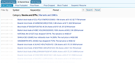 Information included :  Stocks , Warrants & CBBCs , ETF
