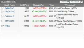 Get updates instantly with our price alert function when stocks meet pre-set criteria